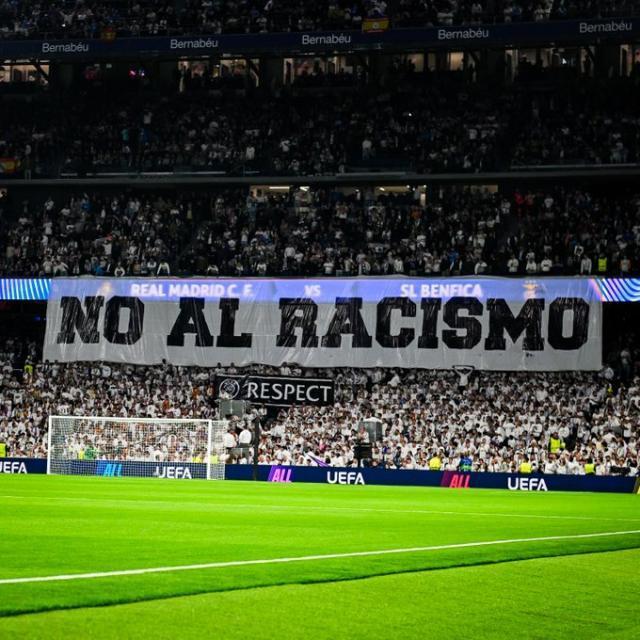 对皇马球迷来说,本场两个话题性人物普雷斯蒂安尼和穆里尼奥双双缺席,多少让他们少了些发泄的出口。伯纳乌南看台赛前打出“反对种族主义”的标语,虽是为了支持维尼修斯而打出,但在自家球员怀森社媒转发涉及歧视不当内容的这个节骨眼上看来,这条标语多少显得有些讽刺了。